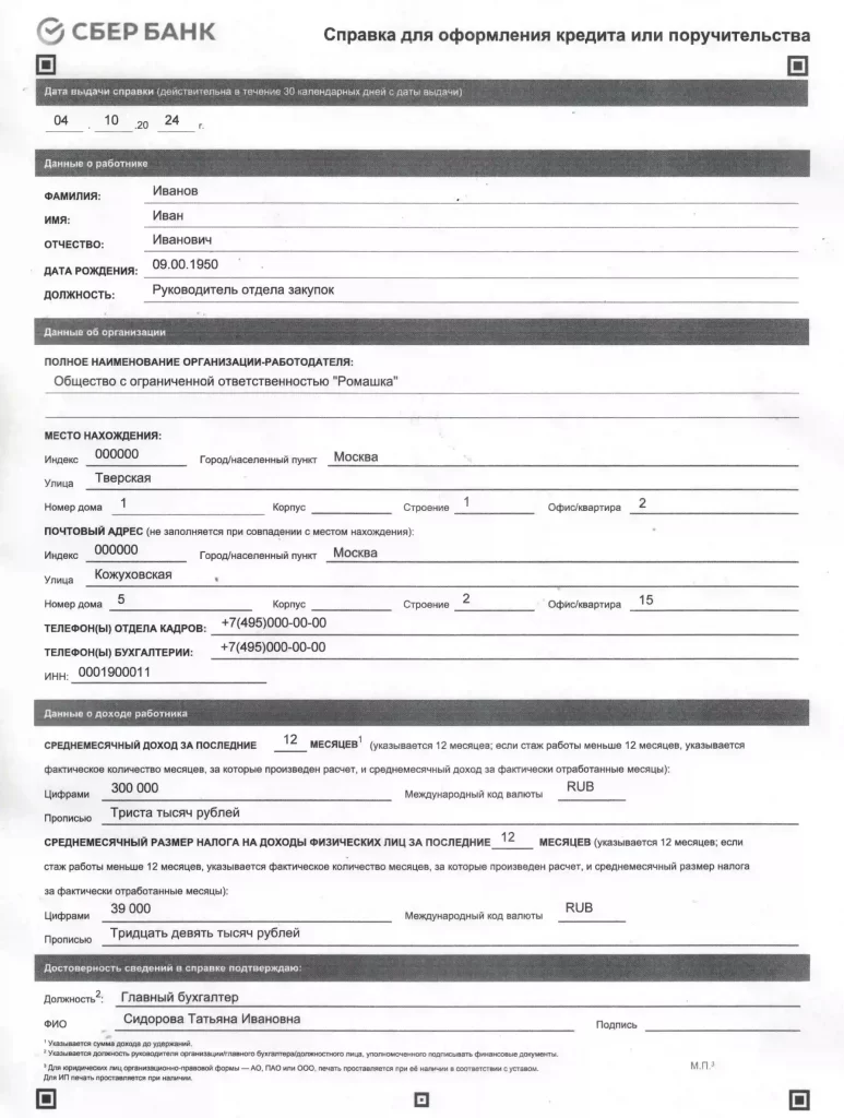 - Штамп и подпись банка – для подтверждения достоверности предоставленной информации.